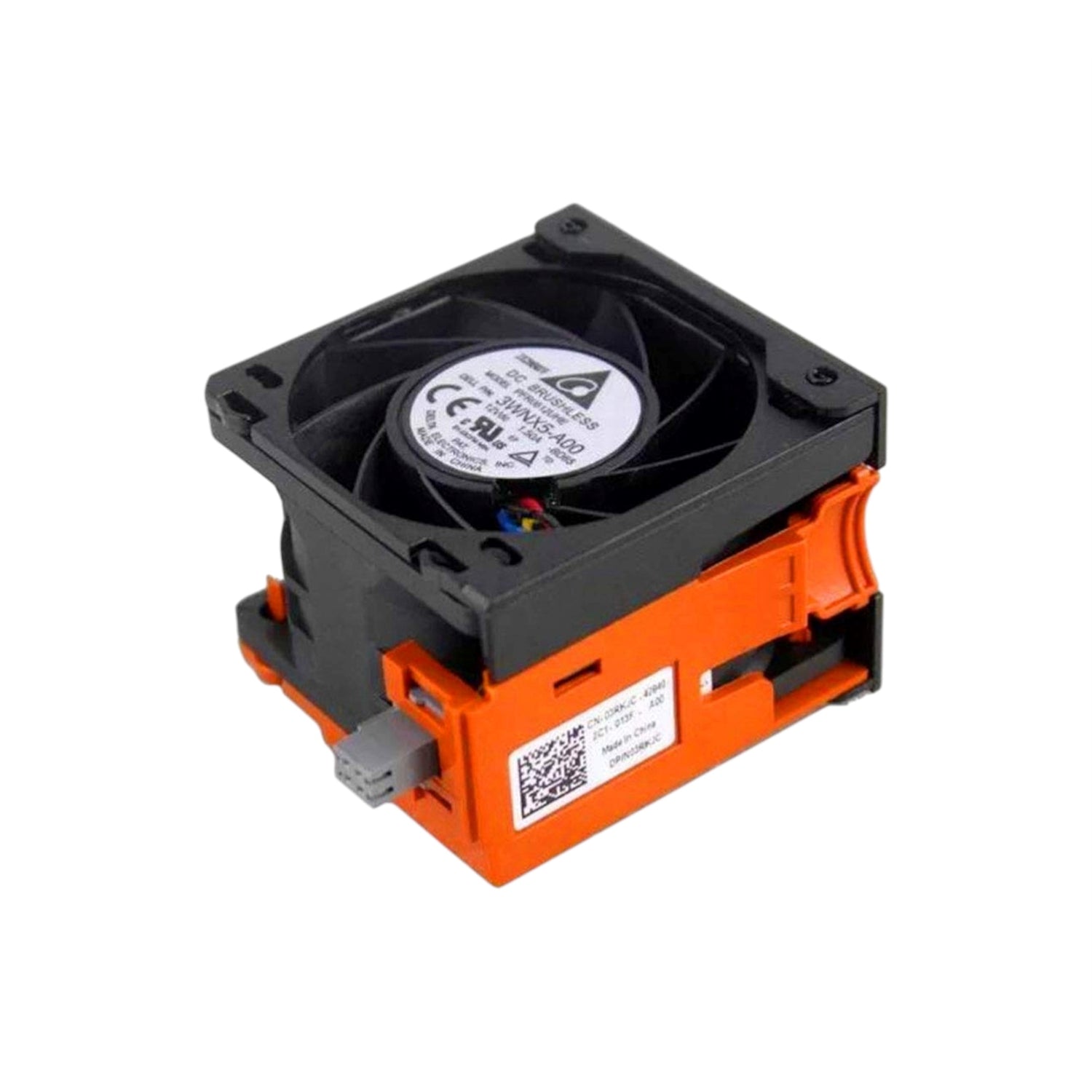 The Dell 3RKJC is a hot‑swappable server fan module designed for use in Dell PowerEdge systems (such as the R720 and R720xd). It provides essential system airflow to help cool key components including CPUs, memory, and other internal hardware. Featuring a 4‑pin PWM connector, the fan’s speed is dynamically controlled by the server’s thermal management system to balance cooling performance and acoustics. The module’s double ball bearing design ensures long life and reliable operation in demanding enterprise environments. A bi‑color LED indicates operational status and fault conditions.