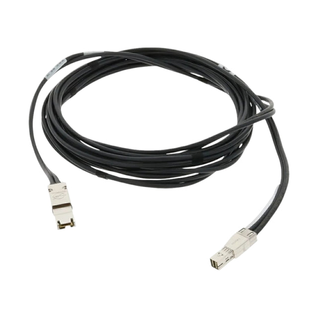 The EMC 038-003-813 is a 5-meter external SAS (Serial Attached SCSI) cable designed to connect storage devices and servers, facilitating high-speed data transfer. It features an SFF-8088 connector on one end and an SFF-8644 connector on the other, ensuring compatibility between devices with differing port configurations. This cable supports data transfer rates up to 12 Gbps, making it suitable for demanding data environments. Its robust construction ensures reliable performance and durability in enterprise settings.