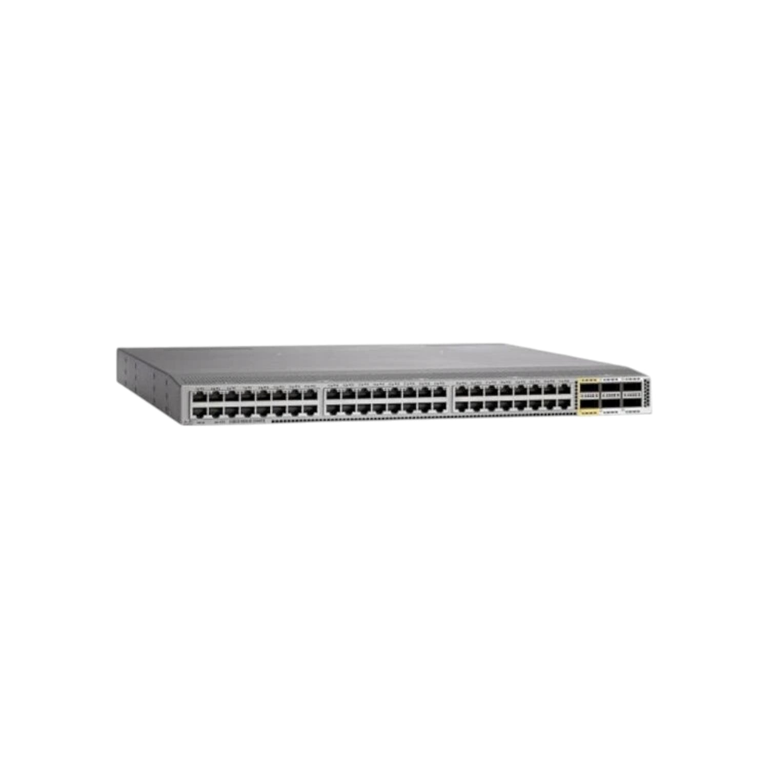 - 48 × 10 Gigabit Ethernet (10GBASE‑T) RJ‑45 ports for high‑speed copper connections to servers or network devices. 6 × 40 Gigabit Ethernet QSFP+ ports for uplinks to the parent Nexus switch — enabling high‑bandwidth backhaul.