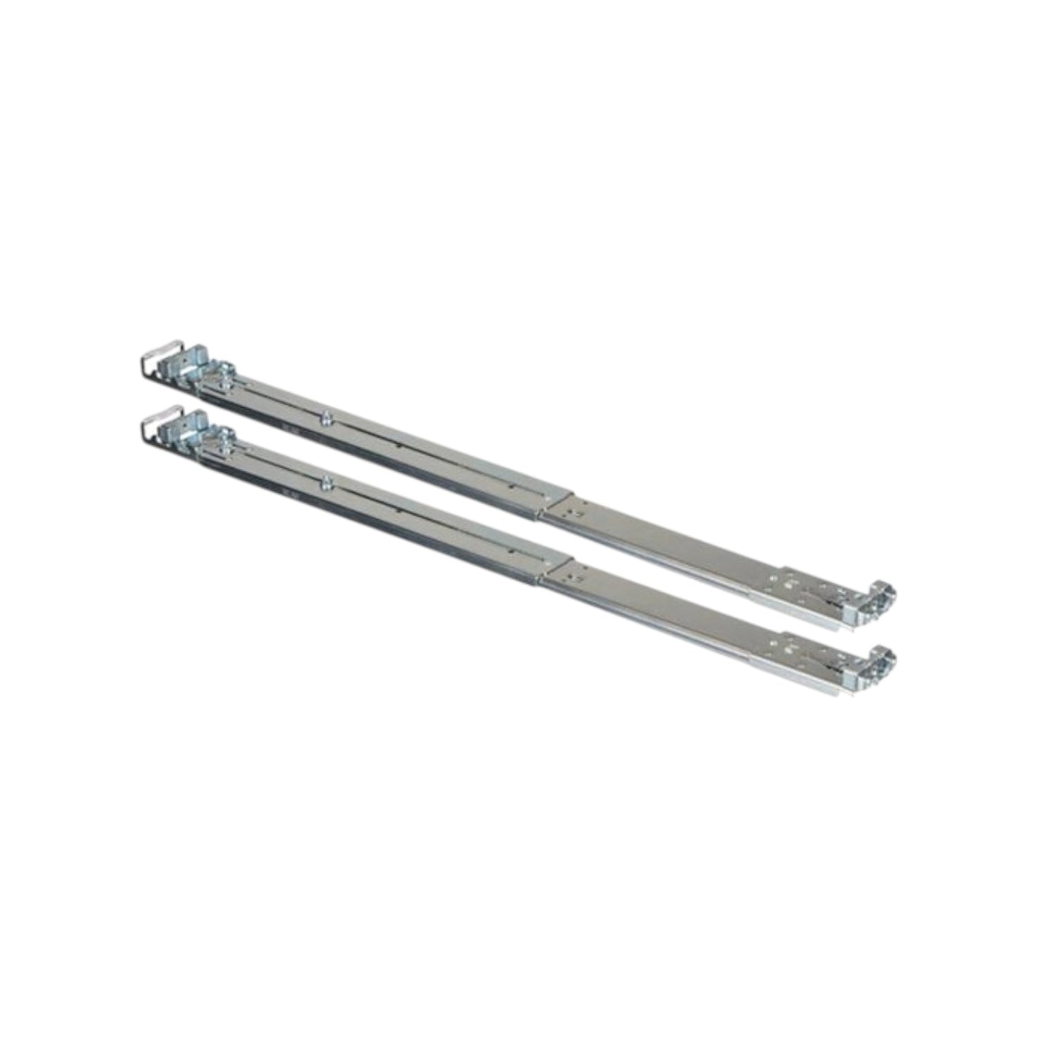 The Dell W990K / D527M rail kit includes inner and outer left and right rails, enabling full extension of the server from the rack for convenient access and servicing. It supports tool-less installation in 4-post racks with square or unthreaded round holes and accommodates tooled installation in threaded-hole racks using optional adapter brackets. The sliding mechanism allows for full extension of the server from the rack, facilitating easy maintenance without complete removal.