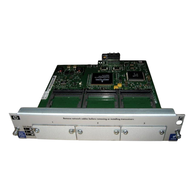 • Three Open Transceiver Slots: The module provides three slots compatible with various HP ProCurve transceivers, allowing for flexible network configuration