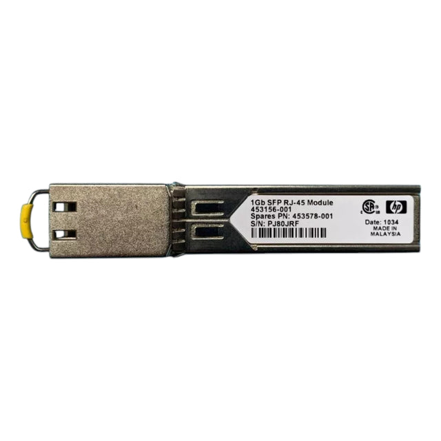 The HP 453156-001 is a 1Gb RJ-45 SFP (Small Form-factor Pluggable) transceiver module designed for Ethernet networks. This module provides 1Gbps data transfer speeds and is typically used for connecting networking devices, such as switches, routers, and servers, via standard copper Ethernet cables.